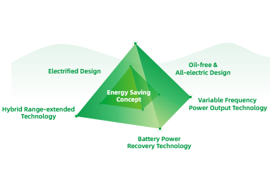 The whole series of products adopt the industry's first modular, electrified, and oil-free design, which comprehensively promotes the application and popularization of new energy for non-road mobile machinery, realizing energy saving and emission reduction. At the same time, it also integrates the concept of energy saving into R&D innovation, including technologies like range-extended hybrid, self-weight lowering, variable frequency power output, battery power recovery and so on, the innovative vitality is continuously stimulated.